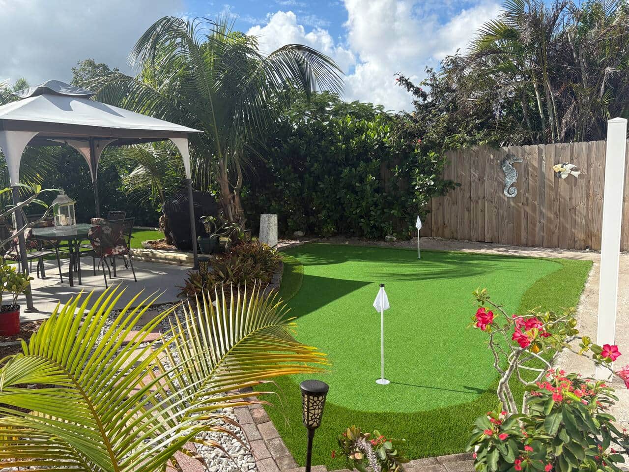 This comfortable and newly refurbished backyard space is perfect for social time or (our favorite) relaxing in the beautiful Florida sun!